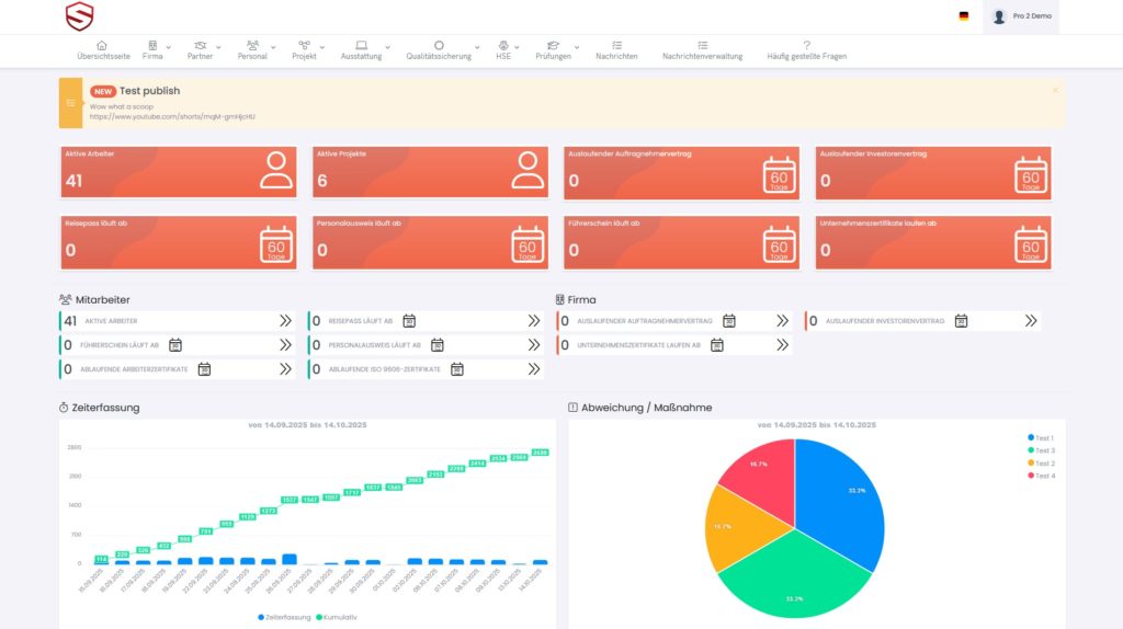 In komplexen Projekten mit mehreren Partnerfirmen kann die Verwaltung von Dokumenten, Zertifikaten und Fristen schnell zur Herausforderung werden.Deshalb wurde im SOFT-TLS das Subunternehmer-Portal entwickelt – eine einfache, sichere und vollständig digitale Lösung, die alle Projektpartner auf einer Plattform verbindet. Jede Partnerfirma kann ihre Dokumente, Zertifikate, Schulungsnachweise und Mitarbeiterdaten selbstständig hochladen und aktualisieren, ohne zusätzlichen Aufwand…
